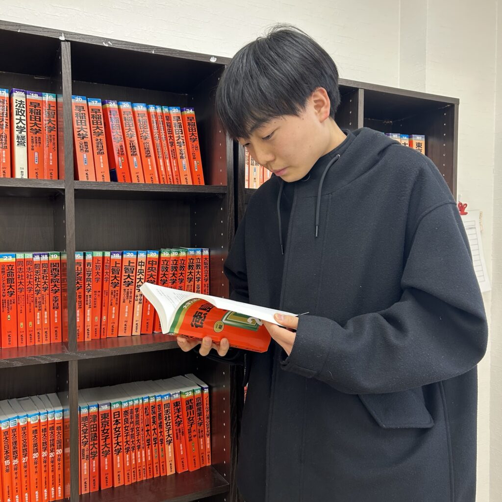 先生に英作をしようとアドバイスをもらい取り組んだこともあります。書いたら塾長に添削してもらって書き直していました。